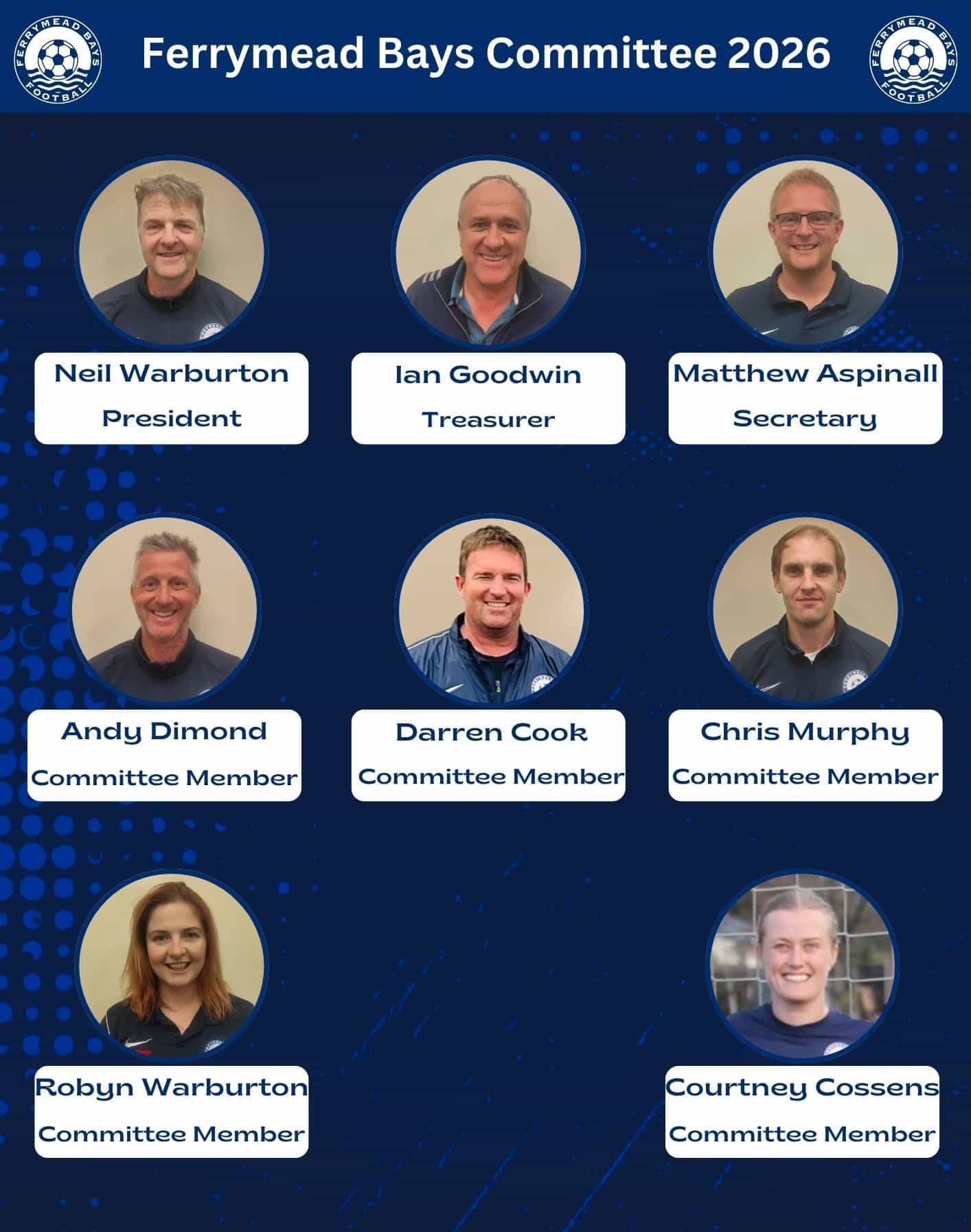 The Committee is a group of volunteers who are responsible for decisions relating to the running of Ferrymead Bays FC.